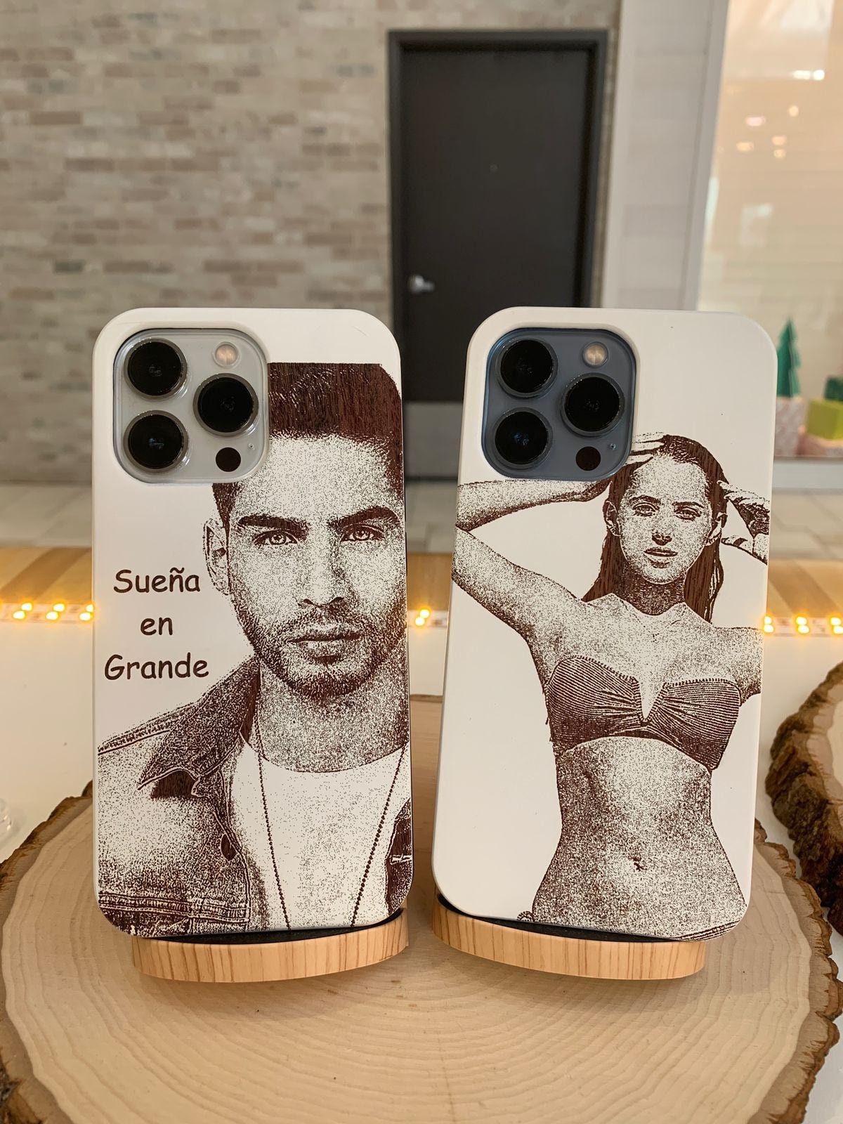 Gravur Holz Handytasche Seine Und Sie Personalisierte Hulle Etsy De